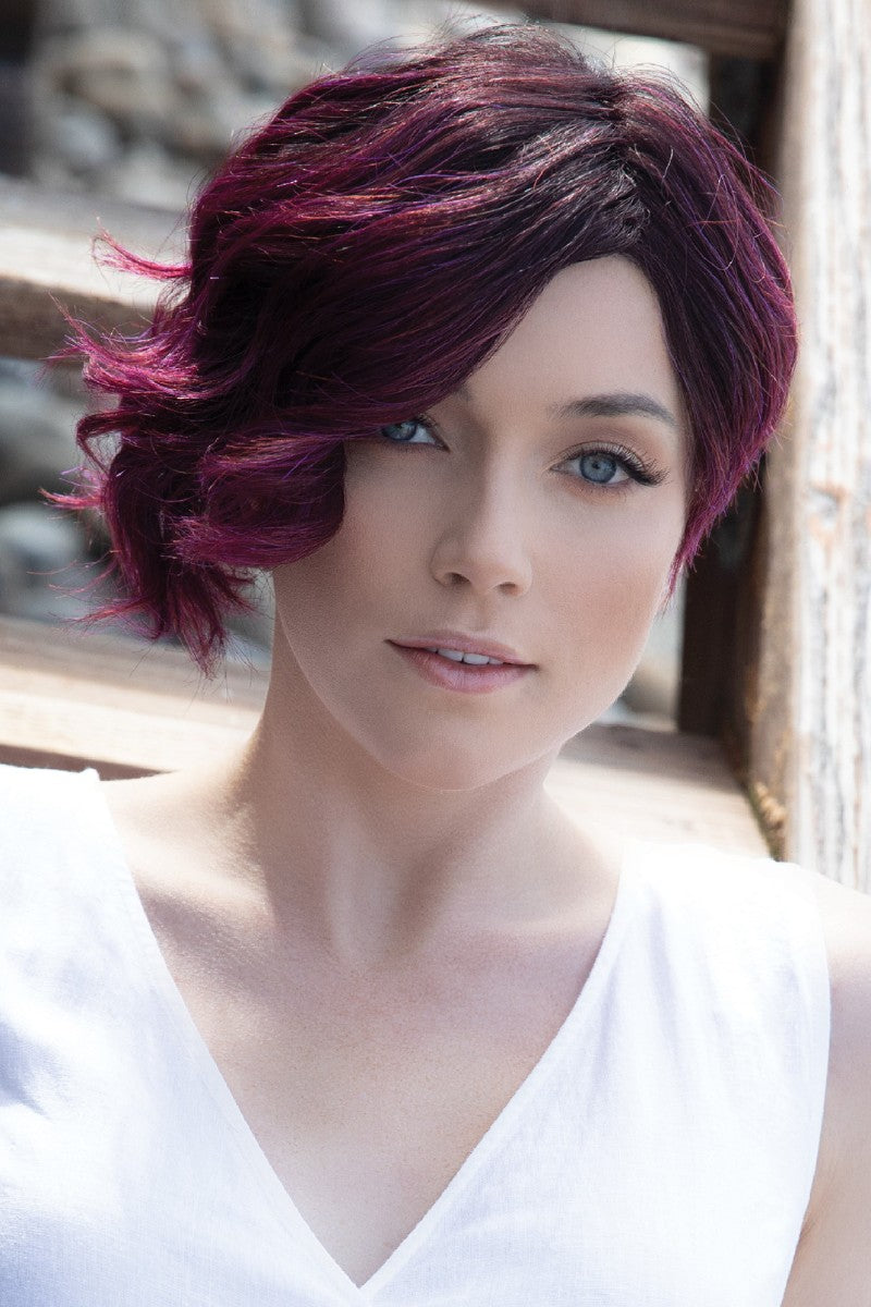 Experience the dynamic and unique style of Alexander Couture Wigs - Vee with its edgy yet elegant asymmetrical cut. Featuring a monofilament top for a natural look, this lightweight synthetic wig offers both straight and wavy options, perfect for creating a versatile and playful shag.
