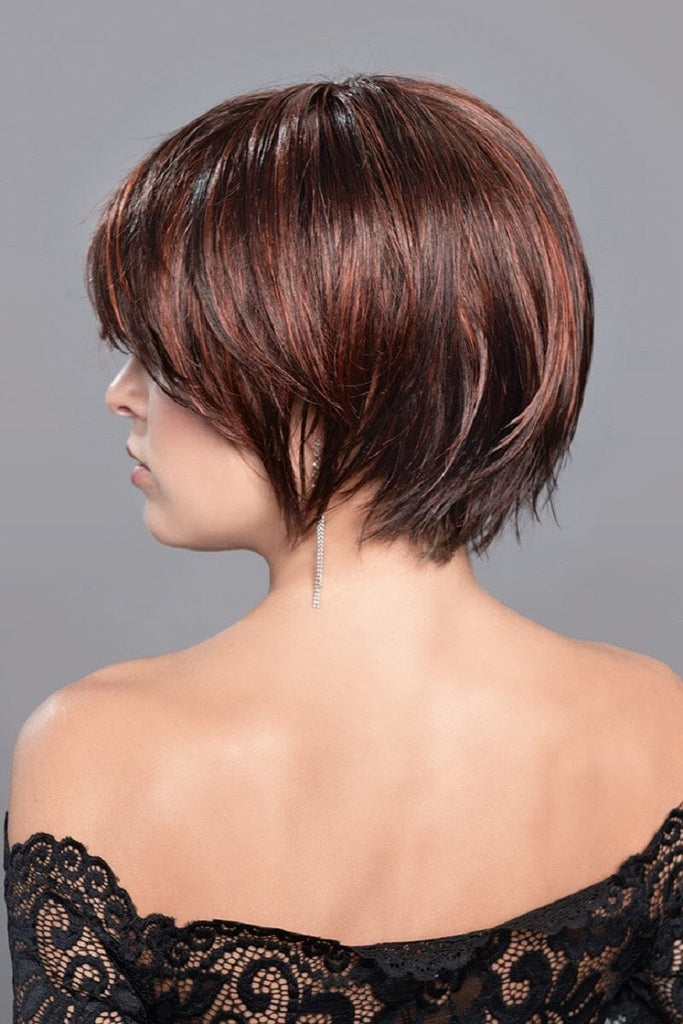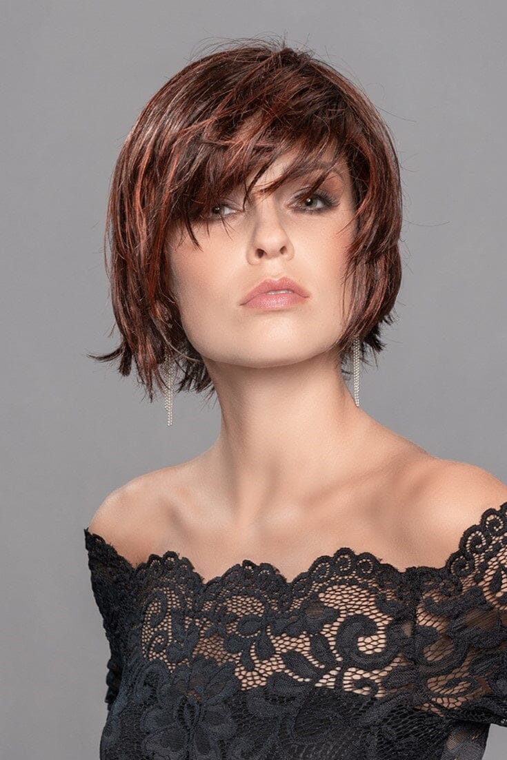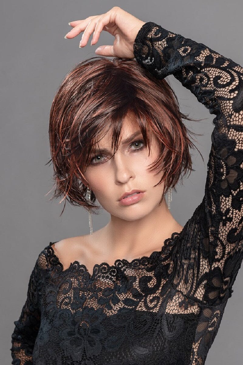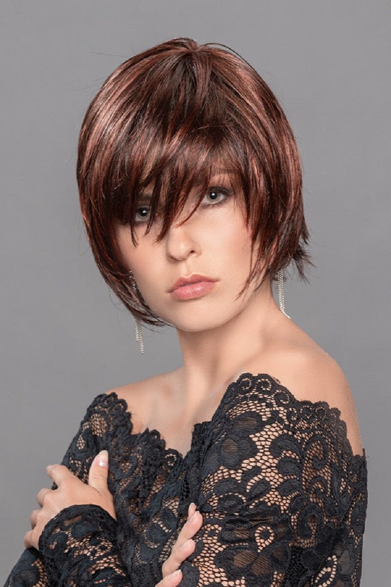 This Echo will be loud and glorious! This modern bob style wig with its long bangs is a modern cut that seduces. The irregular, yet perfect cut gives this wig a girlish look. Echo is part of the Ellen Wille Perucci Collection-the next generation wigs!