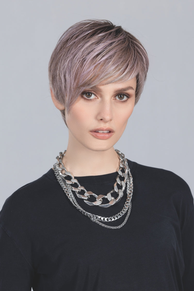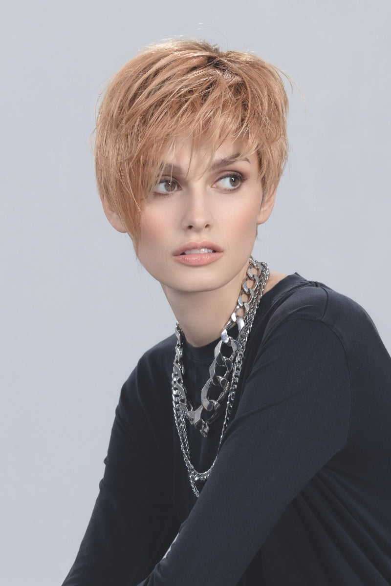 The Link Wig by Ellen Wille is part of the Perucci Collection and is a tousled pixie with long side swept fringe. With its heat-friendly fibers, Link offers the styling versatility you love with the hold you need! Customize the feathered layers using heat-tools or BeautiMark Shaping Creme for a look that is sure to turn heads. The cap features a lace front, monofilament part, and an open wefted back keeping this style lightweight and comfortable.