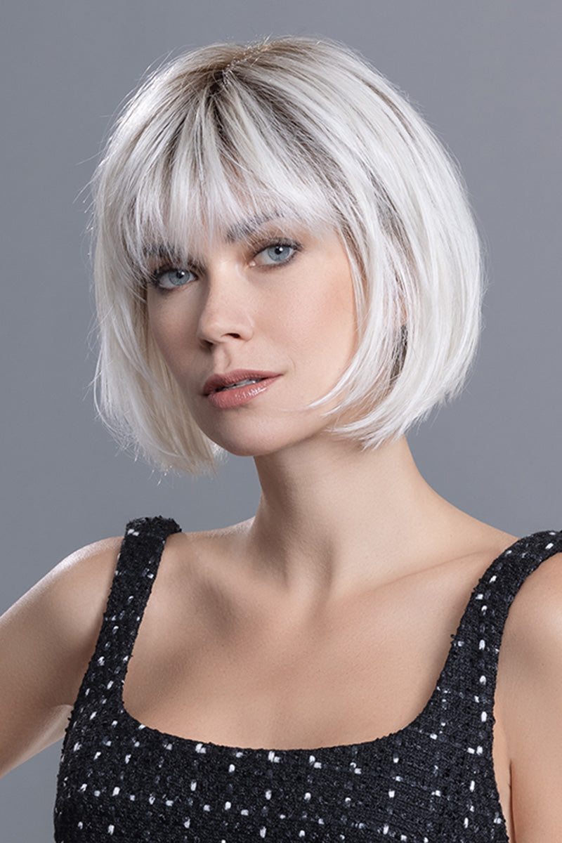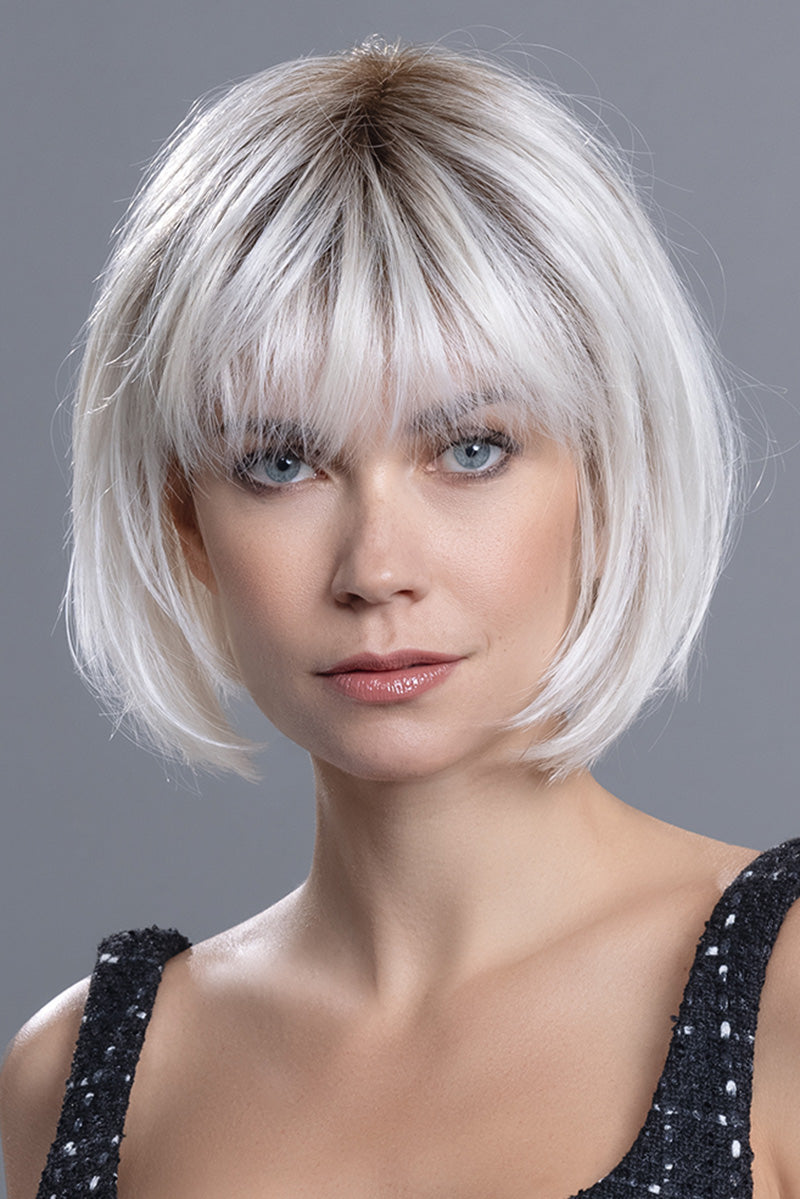 Sing from Ellen Wille Changes Collection is a modern and fashionable bob with a sharp fringe.  The cut is polished and silky from the start and is created with heat-friendly synthetic fiber, granting you the versatility to style just the way you want. The lace front cap and mono part will give a realistic-appearing front hairline. Expect to be trendsetting and gorgeous with this new style!