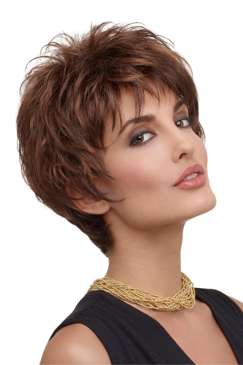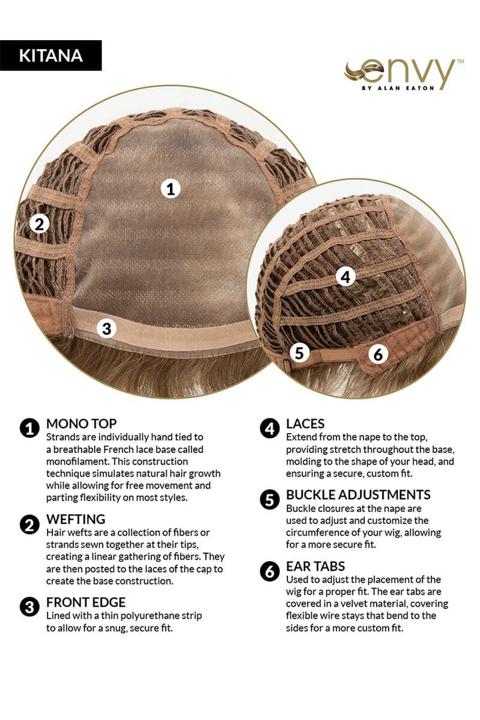 Kitana by Envy is spunky, layered, and textured galore! With its tapered, extended nape, this pixie wig offers the softest neckline, while face-framing, razored edges give a deconstructed look for today’s most style-conscious woman. The Mono Top construction provides flexibility in styling, allowing you to comb from either side, to suit your individual needs.
