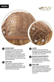 With her shoulder-skimming layers and flipped ends, Nadia Petite is as effortlessly fashionable as she is charismatic. Her Mono Part construction and hand tied technology combine to give comfort, styling flexibility and the most natural appearance.