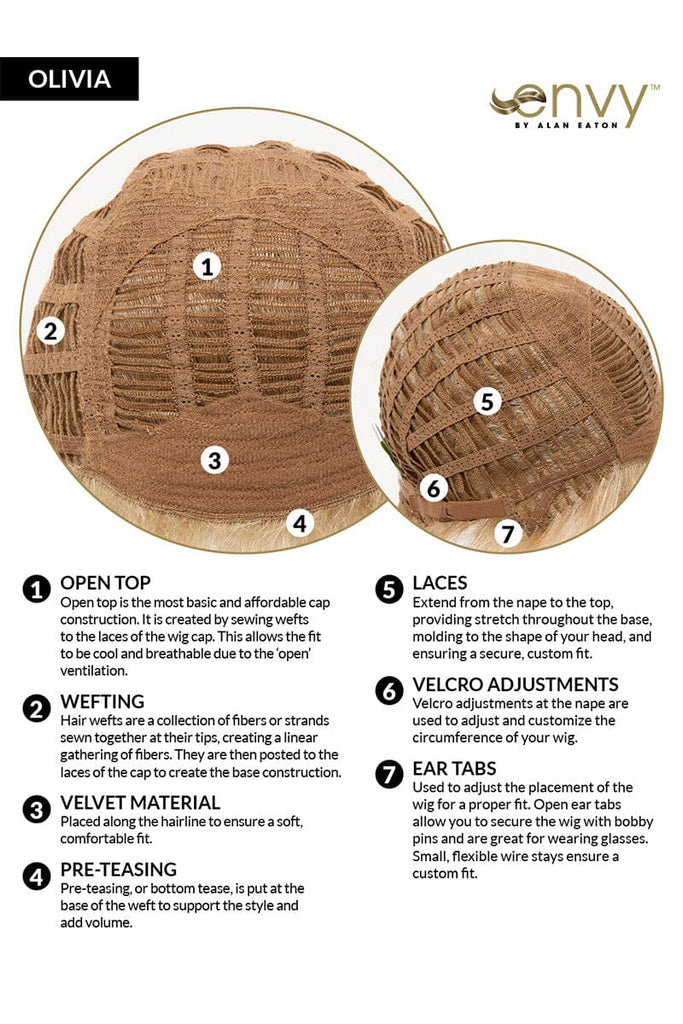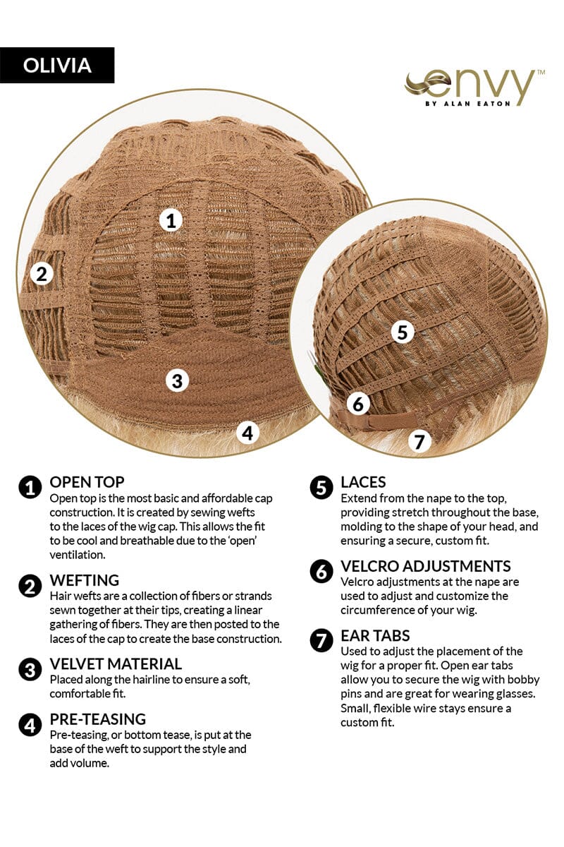 There’s nothing not to love about Olivia’s masterfully spiked layers. Texture rules the day with this modern play on the classic nape-hugging pixie. Your scalp will enjoy the gossamer lightness of the capless construction, while the versatility of our heat-friendly EnvyHair™ blend will appeal to your creative side. Heat set, curl, or straighten to make Olivia all your own!