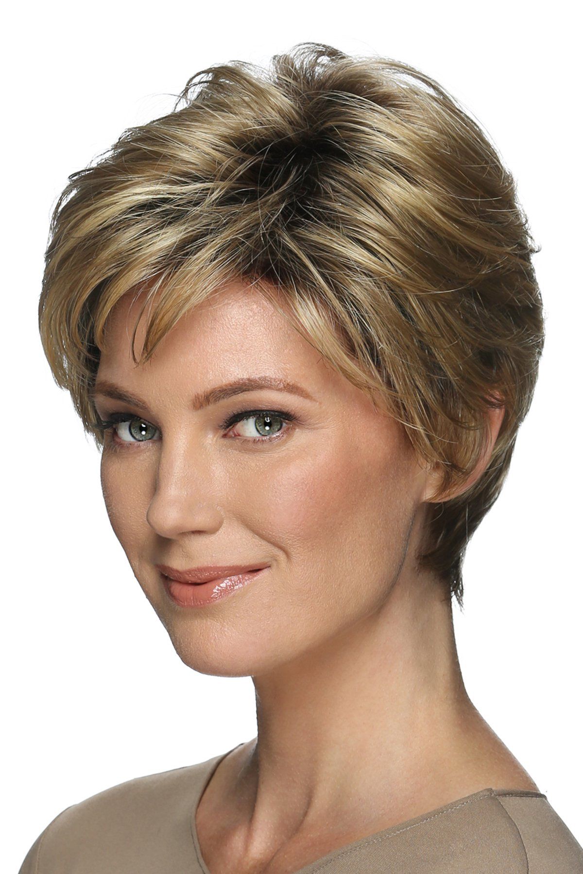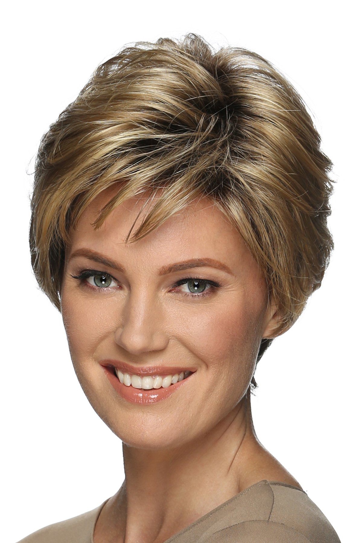 Billie is a classic short, straight style with a tapered nape that is not short on volume or comfort. This every day style is so easy to style and wear.