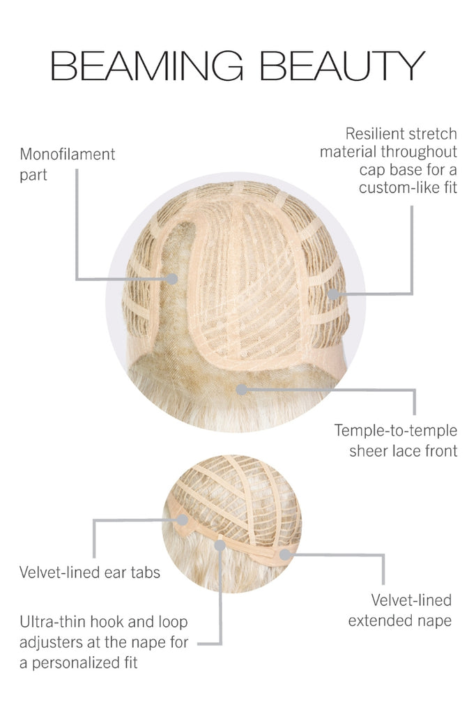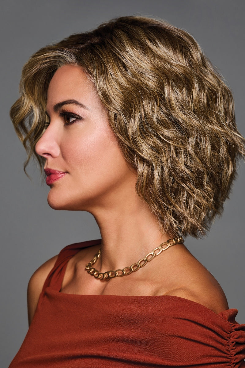 Beaming Beauty by Gabor Wigs is the ultimate showcase of effortless beauty and timeless style. Featuring a carefully crafted short, waved bob with an elegant A-line twist, this stunning piece elevates today's trending beach waves to a whole new level. The sides gently tousled and a natural-looking monofilament part and extended lace front add a touch of nonchalant sophistication and undeniable charm.