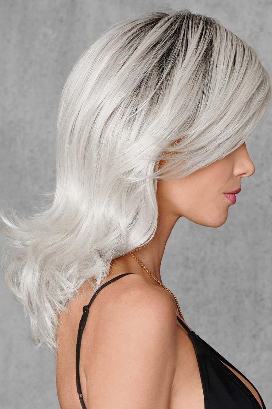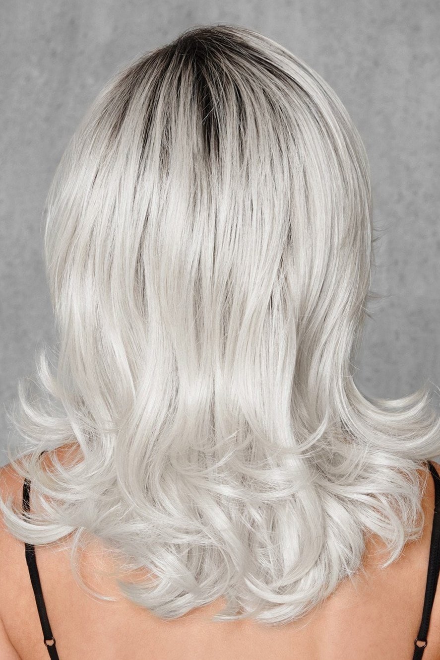 Wow in this wickedly white wig. The classic mid-length hairstyle is updated and made edgy with a silver white base and darker roots. Add your personal style to this cut by styling it curly or straight. The open wefted cap keeps you comfortable while you rock these locks.