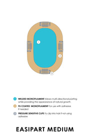 EasiPart Medium is ideal for those experiencing beginning to mid/progressive hair loss and looking for more coverage and volume. This Remy human hair topper features more density, a wider base for more all-over coverage, four pressure-sensitive clips, and larger polyurethane perimeter allowing easier application of Tape ‘N Go or adhesive.