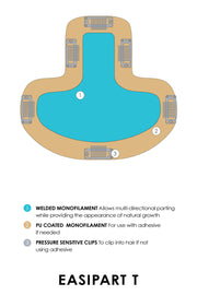 EasiPart T is ideal for those experiencing beginning to mid/progressive hair loss and looking for more coverage and volume in the crown area. This topper features more density, a wider base for more all-over coverage, and larger polyurethane perimeter with six strategically placed pressure sensitive clips that can be removed if Tape ‘N Go or adhesive is applied.