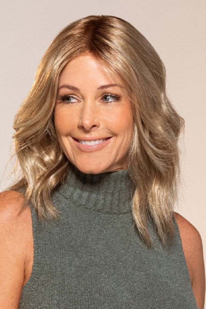 The Jon Renau Kaylee has elegant loose waves that seem too natural to be a wig. This style's lace front, hand tied design helps with realistic movements.