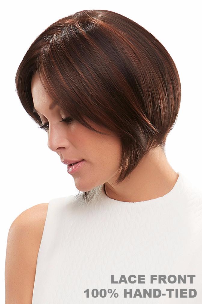This sleek, modern bob wig creates a flattering angled silhouette. The 100% hand tied cap, monofilament top and smart lace front hairline allow each strand to swivel freely, just like natural hair.