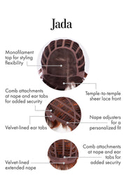 Lights, camera, action! JADA brings all the seductive style of a brazen Bond girl to this sexy boycut. She’s a short, straight crop with a longer front and a monofilament top for sweeping movement that can be brushed forward or with a sophisticated side part.