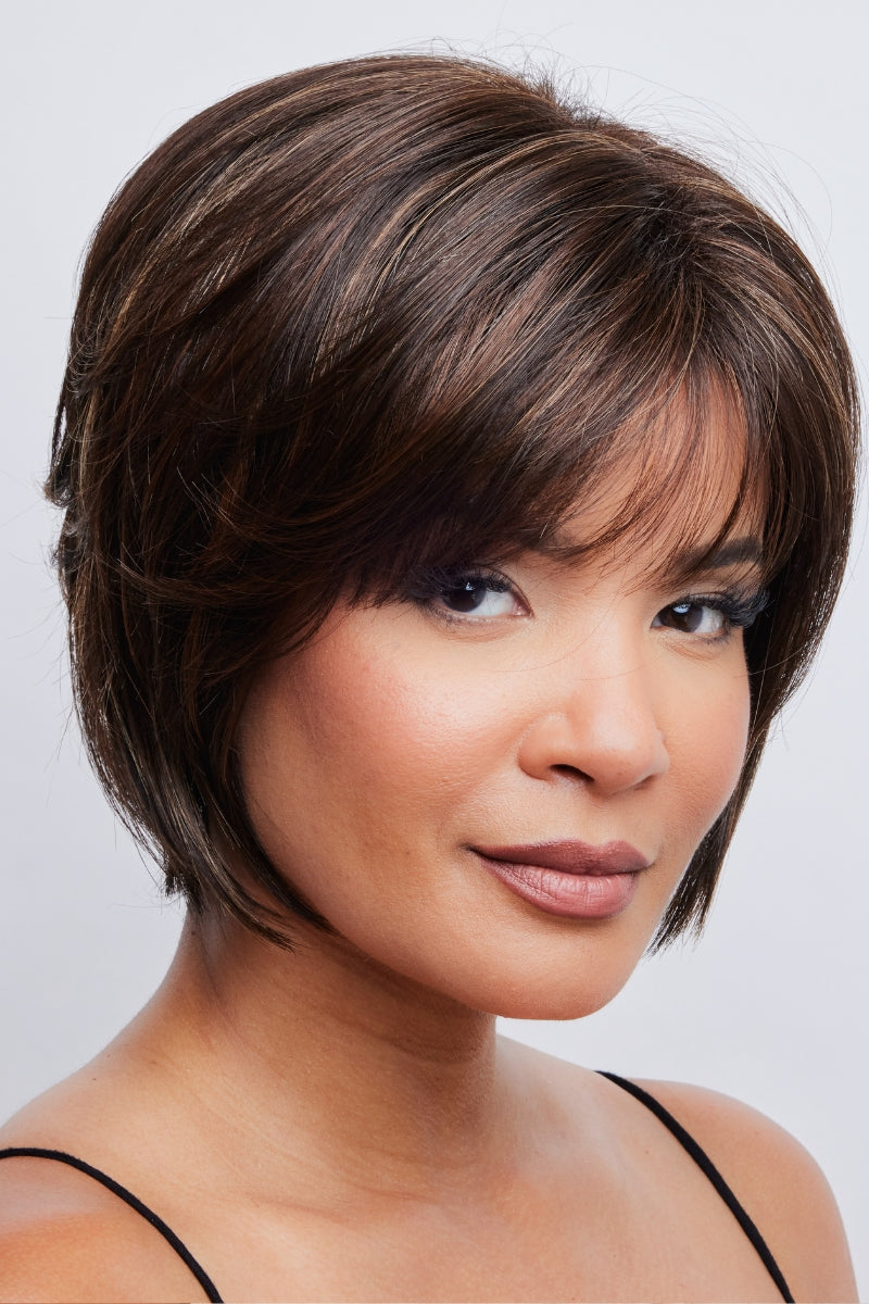 Experience natural beauty with Zeal! This short, layered bob defines modern fashion with its sleek straight style and feathery fringe. Crafted with high quality and lightweight synthetic fibers, this wig gives a natural appearance. With adjustable tabs and a standard wefted cap, you'll enjoy the perfect fit for you. Get ready to be the envy of every room with Zeal by Noriko Wigs!