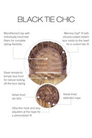 Step out in modern, effortless sophistication with Raquel Welch's Black Tie Chic wig. Its shaggy layers, full bangs, and voluminous natural movement make this wig perfect for every occasion. Featuring a monofilament top, temple-to-temple lace front, and Memory Cap III base. Black Tie Chic looks and feels like real hair with hand tied, heat-friendly, Tru2Life synthetic fibers. Feel confident and turn heads with this timeless beauty!