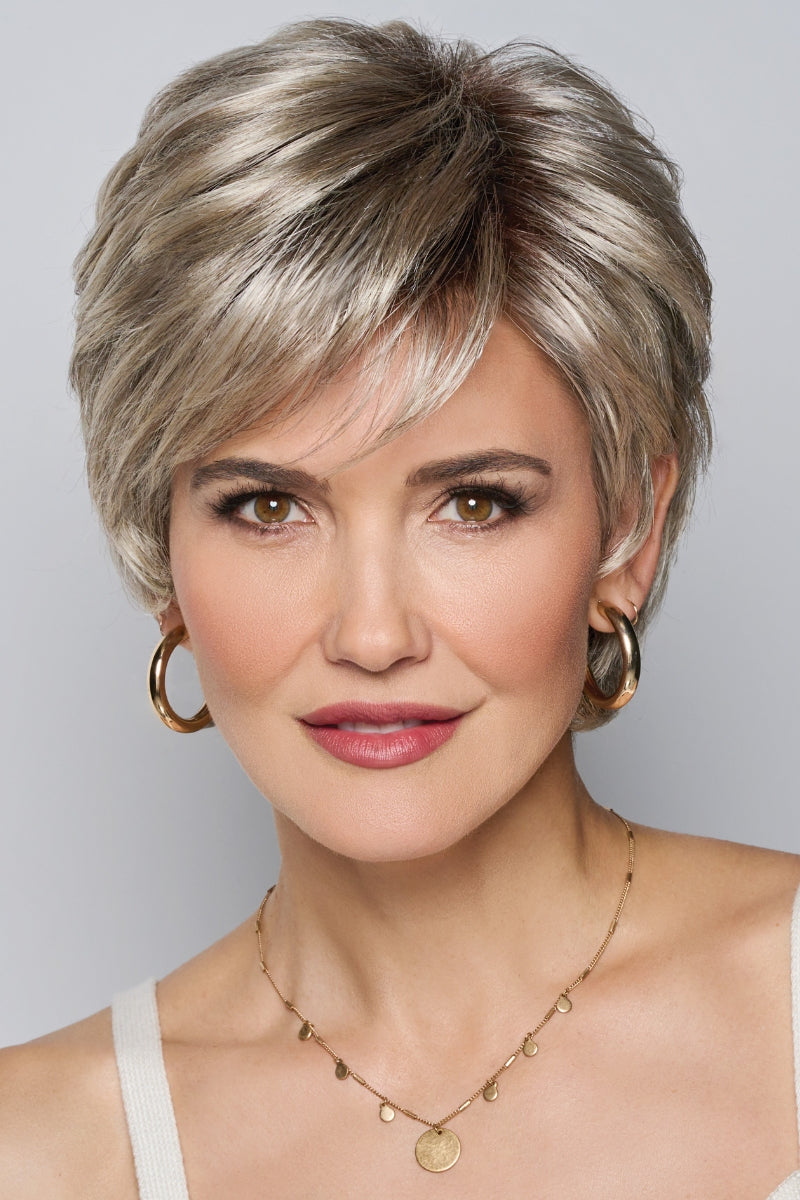 Introducing Raquel Welch Wigs Dress Code Large! Experience the upscale, sophisticated look with layered shag and razored texture for added volume. The short, soft hair with a tailored cut and elegant bounce will leave you feeling confident and stylish. Made with memory cap and Vibralite hair fibers for a comfortable and realistic wear.