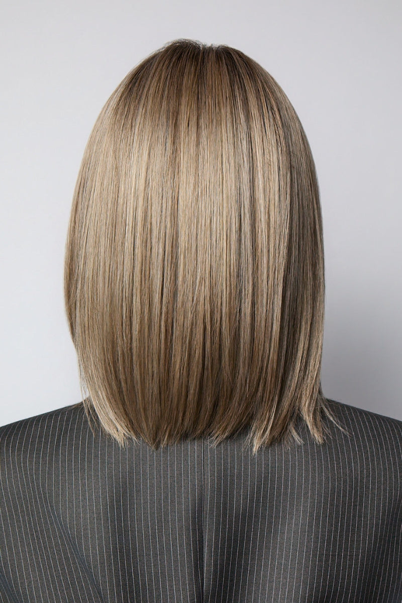 Ila is a medium-length synthetic wig designed for effortless style. This ready-to-wear piece features a classic, layered collar-length bob that looks naturally refined and beautifully polished. An extended lace front and wide monofilament part create a realistic hairline and natural movement, while velour ear tabs, extended nape tabs, and a Velcro adjuster ensure a secure, comfortable fit. Ila offers timeless elegance with minimal upkeep, making it perfect for everyday wear.
