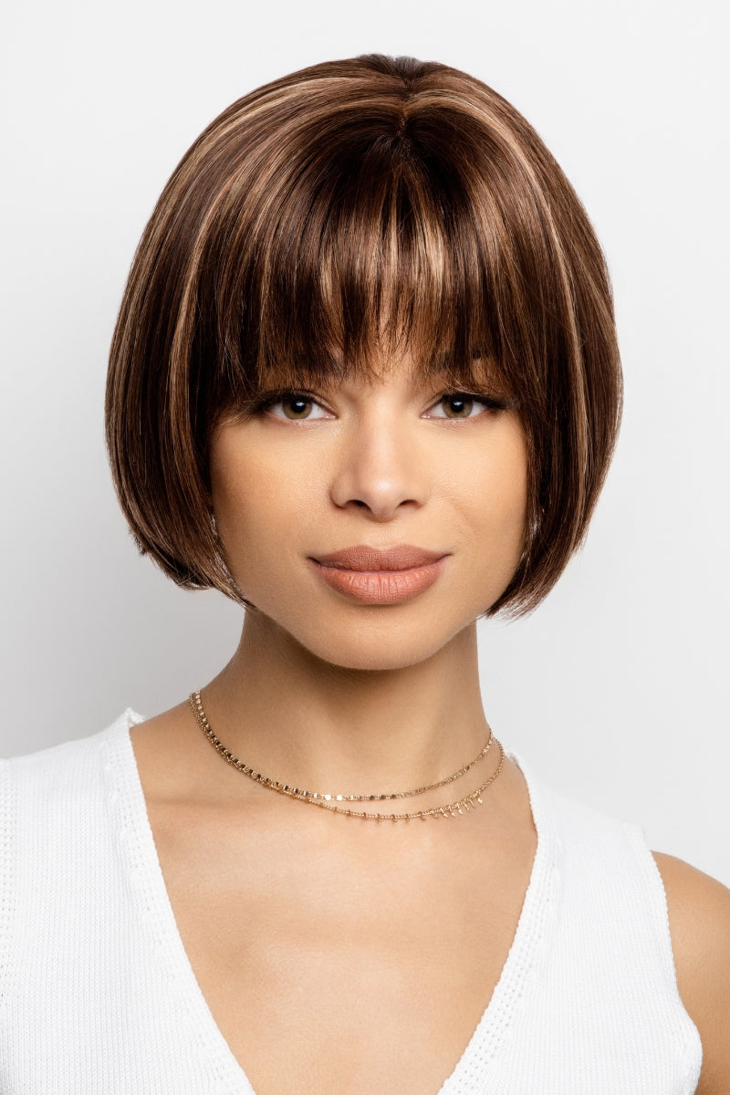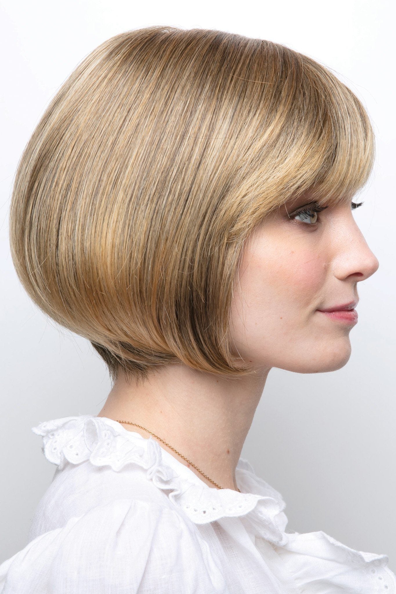 This straight ready-to-wear wig creates a beveled fullness throughout nape and sides. Its Double Monofilament cap construction is combined with calibrated machine wefting along the sides and back. The cap includes polyurethane tape tabs along the front and adjustable tabs in the back neck area, to allow for comfortable fit. The result is a comfortable fit with a natural look that is both fashionable and easy to wear.