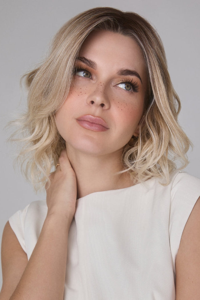 The Rohan by Amore Wigs is a stunning mid-length, feathered bob designed for women who crave effortless style and versatility. This shoulder-length lace front features long, layered waves that add volume and dimension, creating a dynamic, face-framing look that’s perfect for any occasion. Crafted from heat-friendly synthetic fibers, the Rohan allows you to customize your style with gentle heat tools, whether you prefer sleek sophistication or soft, tousled waves. The monofilament top provides a natural scalp appearance, while the extended lace front ensures an undetectable hairline, giving you confidence with every wear. Designed for all-day comfort, this wig is light, airy, and breathable, offering a secure yet weightless feel. The blown out front effect adds a touch of glamour, enhancing your natural beauty with effortless movement and flow. Experience the best in mid-length wigs with Rohan – where style, comfort, and versatility come together in one gorgeous, ready-to-wear look.