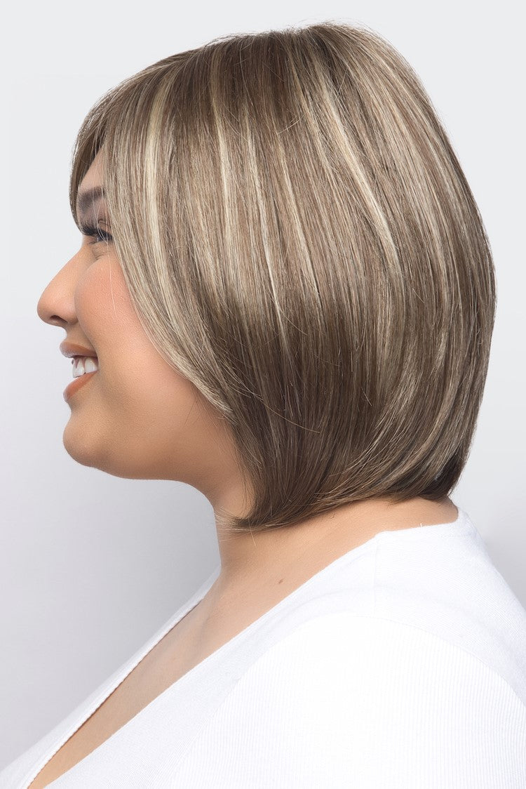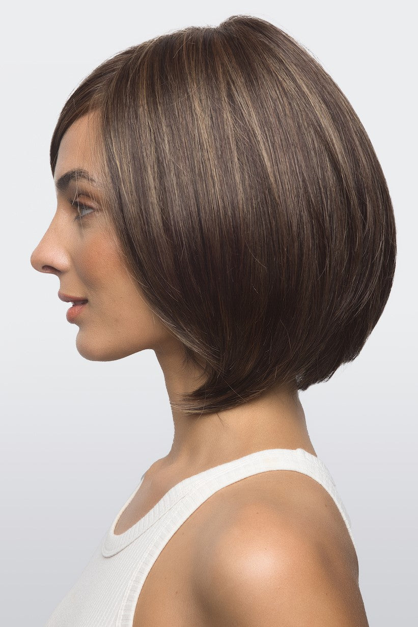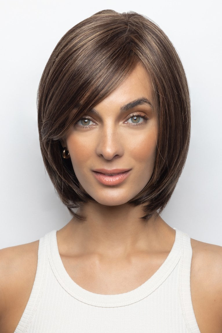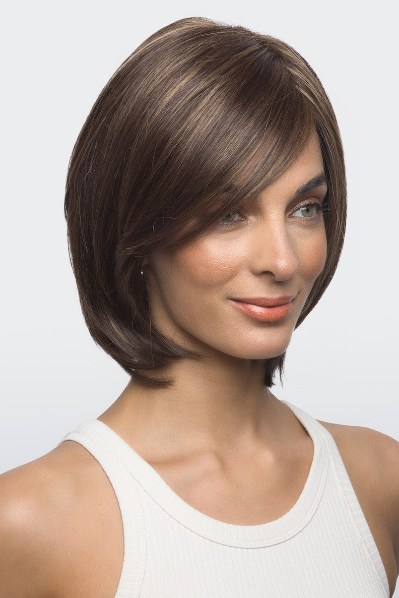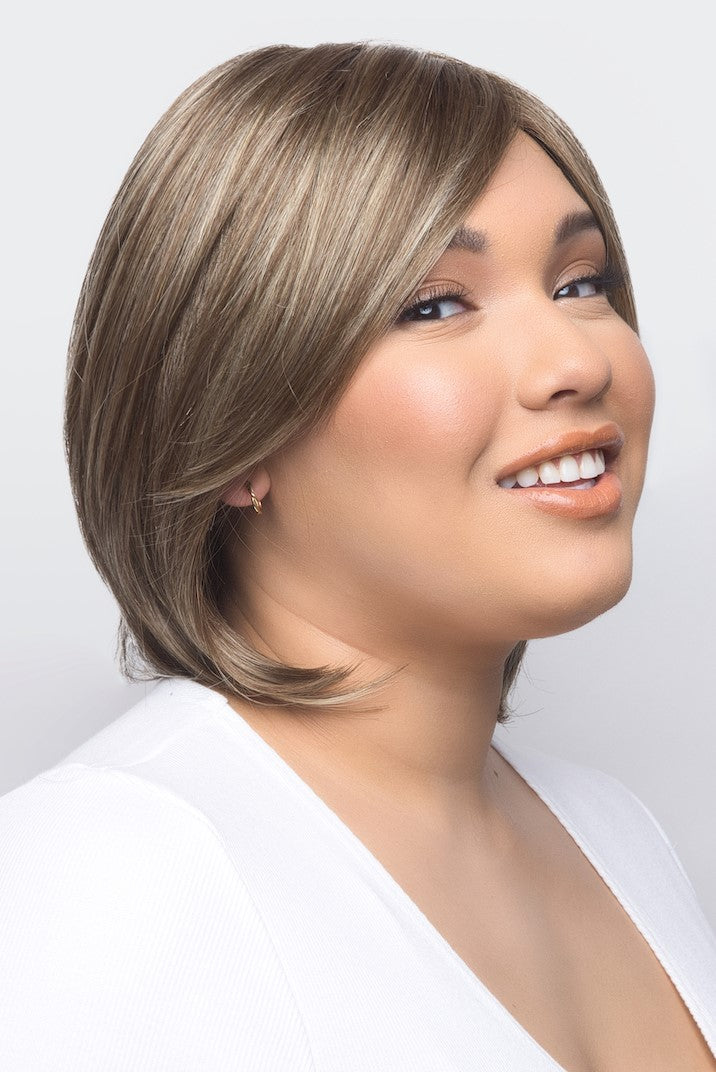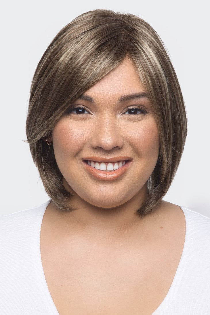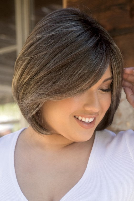Sybil from our Amore Collection is a short length synthetic wig. This straight ready-to-wear wig is a sophisticated long layered bob. If you are wanting a long side fringe with enhancing layers that shape and highlight your cheekbones, Sybil is the style for you. Discover comfort and beauty in the newest Advanced Lace Cap. Sybil’s cap features hand tied plus double monofilament cap construction along with an extended lace front. Its hand-tied wig is constructed by carefully stitching each hair fiber strand by strand. This meticulous design produces a lighter, more comfortable wig. The lace front is a hairline fusion technology with minimal lace front for a natural look. You will feel cool and comfortable with superior air circulation provided by this technologically advanced cap design.