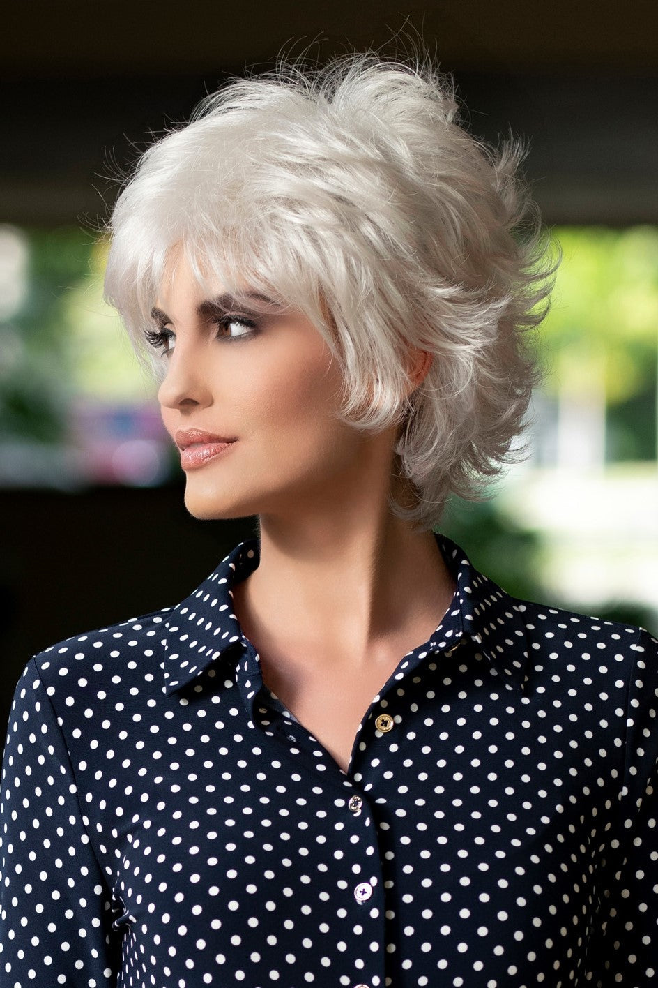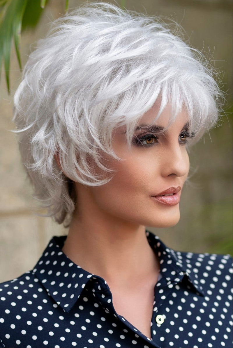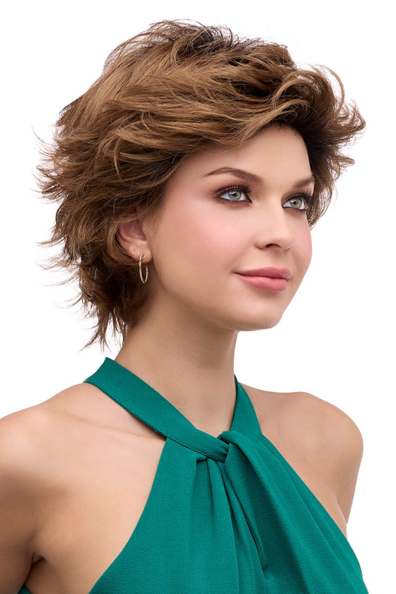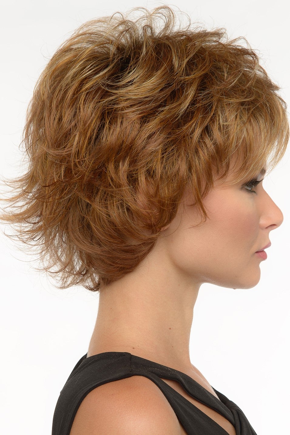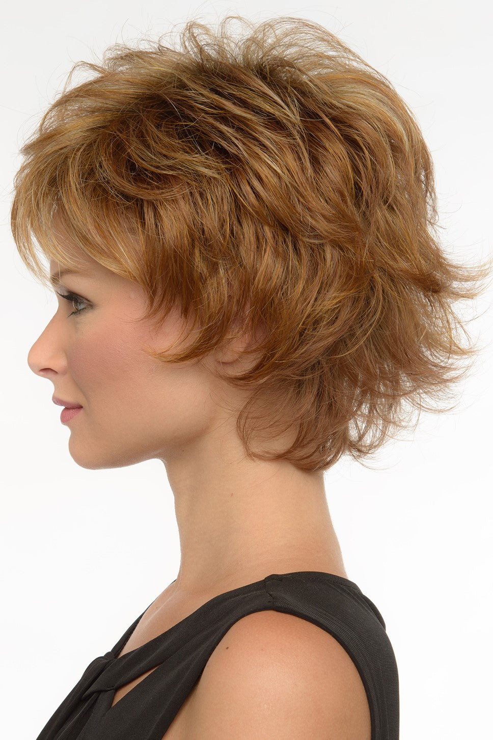 A fashion-forward layered shag style. Fluff it up or comb in closer for a more subtle appearance. From spiky to softer, this mid-length style is designed to compliment many age ranges.