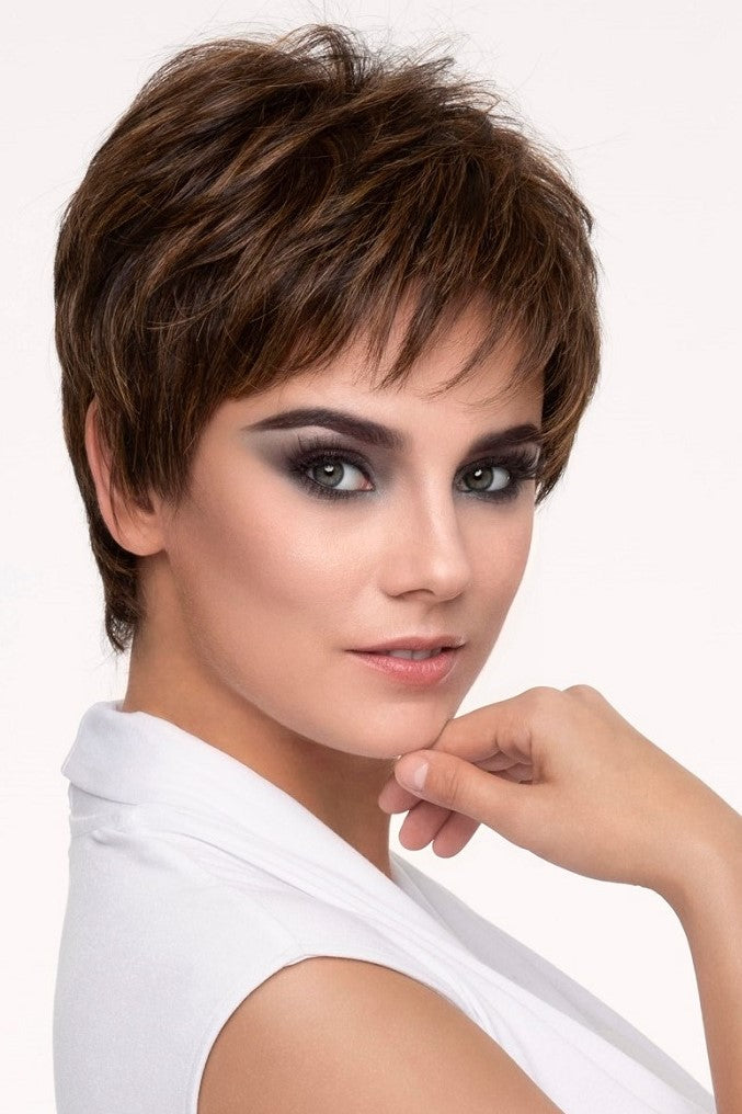 With her classic pixie cut and sassy, piecey bangs, Destiny by Envy will always be in style. Flat iron for a spiky edge or heat roll for a softer appearance—EnvyHair™ heat-friendly fiber blend lets you style this wig according to your whim. And her Mono Top construction with hand tied sides and back ensure a look everyone will think is natural.