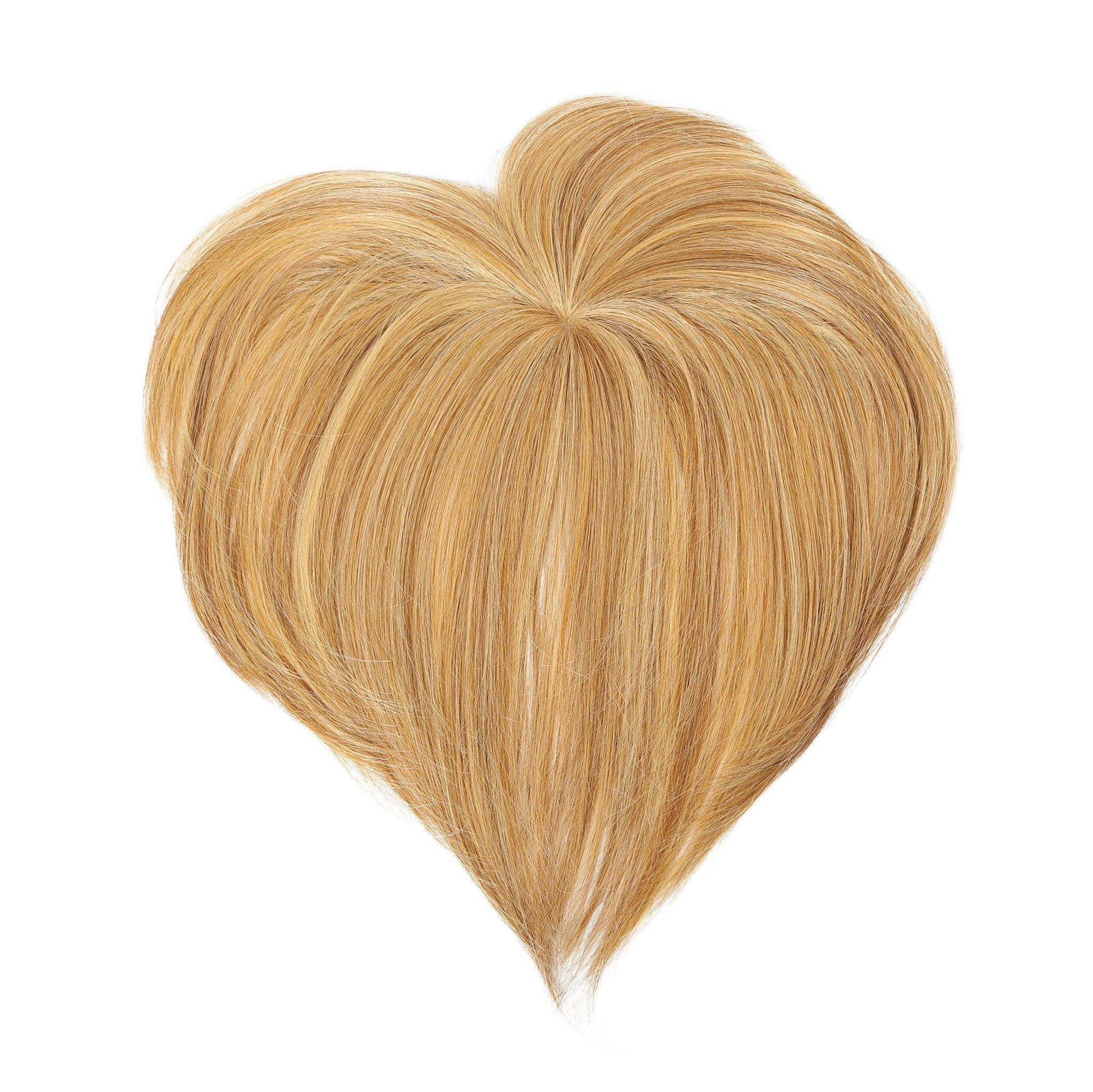 An easy-to-attach filler piece that provides just the right amount of volume in the crown area, this clever top-of-head hair addition features a skin crown for a natural look, 4 pressure sensitive clips for a secure attachment and the option of full or feathered bangs without the commitment of cutting.