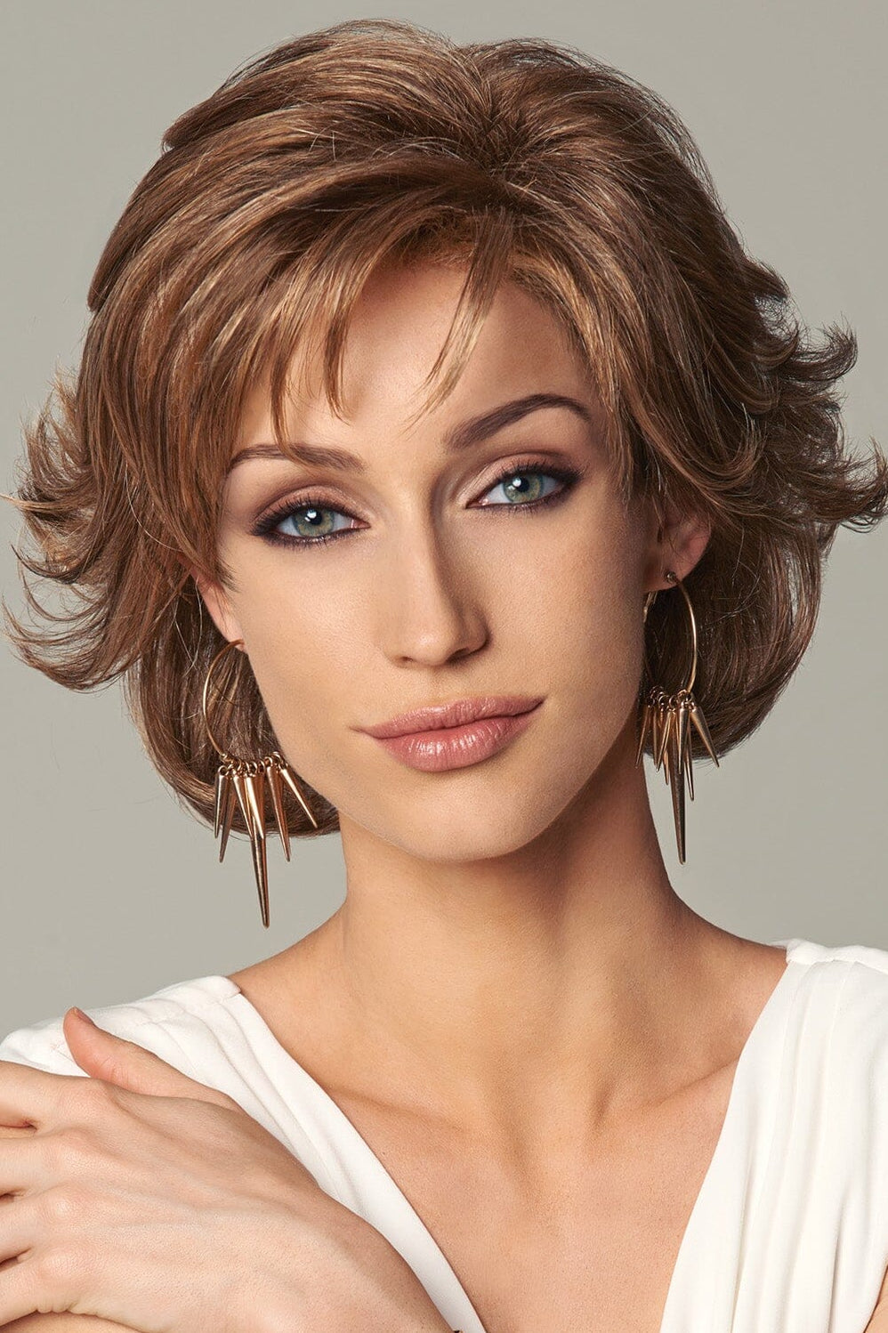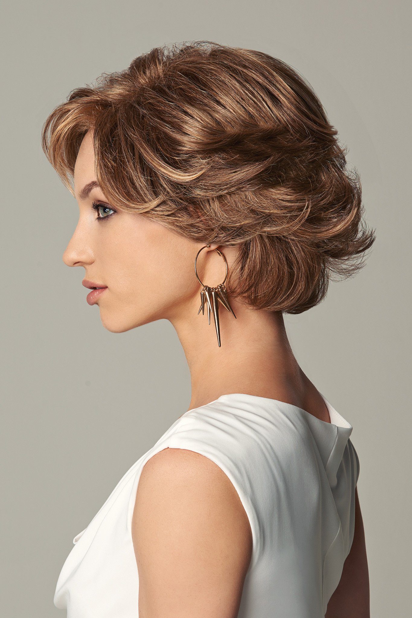 Softly waved layered wig with sides that sweep back and bring a touch of glamour to this shag and to any activity, any day.