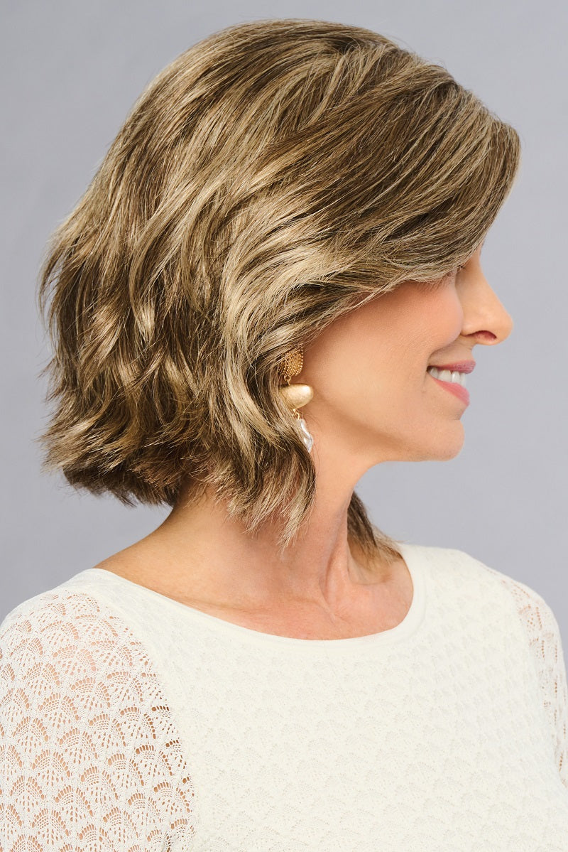 The gentle, undulating wave in this trendy blunt bob gives it a fresh, undone look. Mod About You features an extended lace front that lets you wear away from the face or half up/half down. With its light and airy design and natural density, it’s the must-have addition to this season’s wig wardrobe.