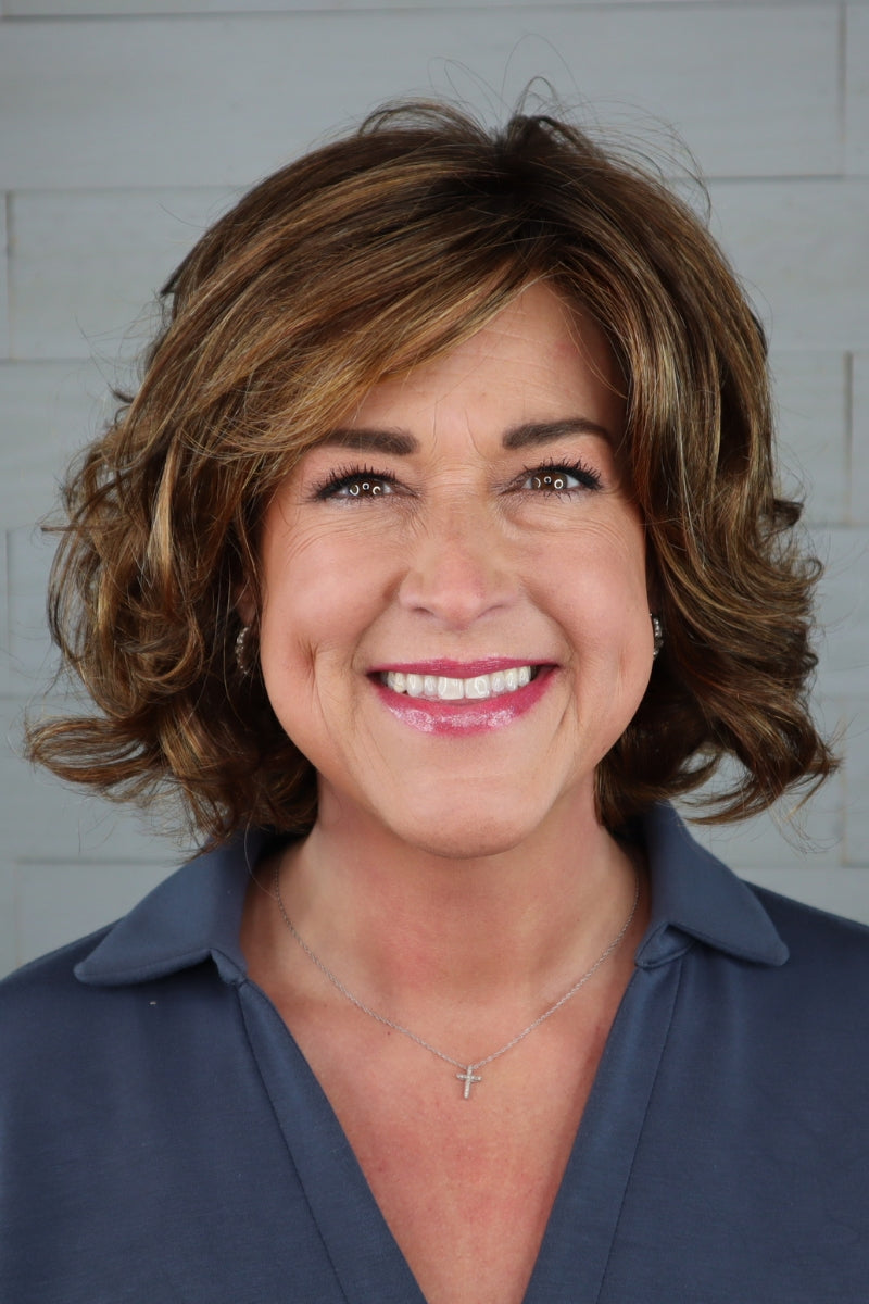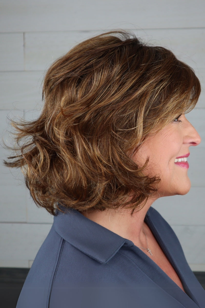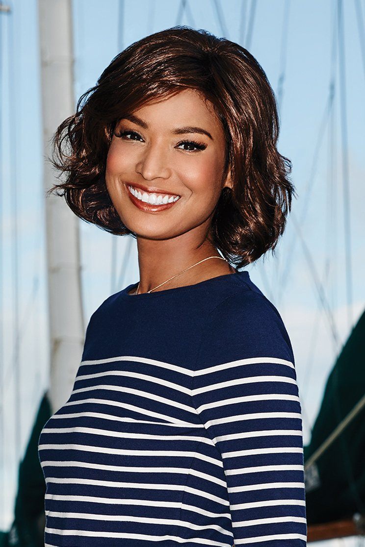 This classic bob wig is modernized with textured waves. An eyelash bang graces the front to add an air of flirtation, while softly layered lengths throughout offer fullness and movement. The temple-to-temple sheer lace front with a monofilament part allows for off-the-face styling and guarantees a light, comfortable fit and natural look.