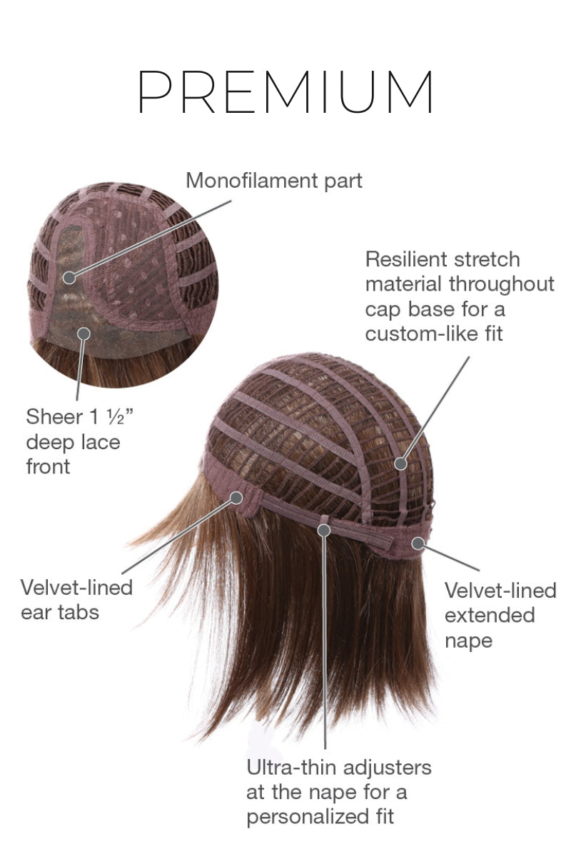 A gently layered, shoulder length page style wig with angled-cut sides that flatteringly frame the face, this fashionable cut includes a hand-knotted monofilament part for a natural looking scalp and optional bangs with a sheer lace front for life-like, off-the-face styling.