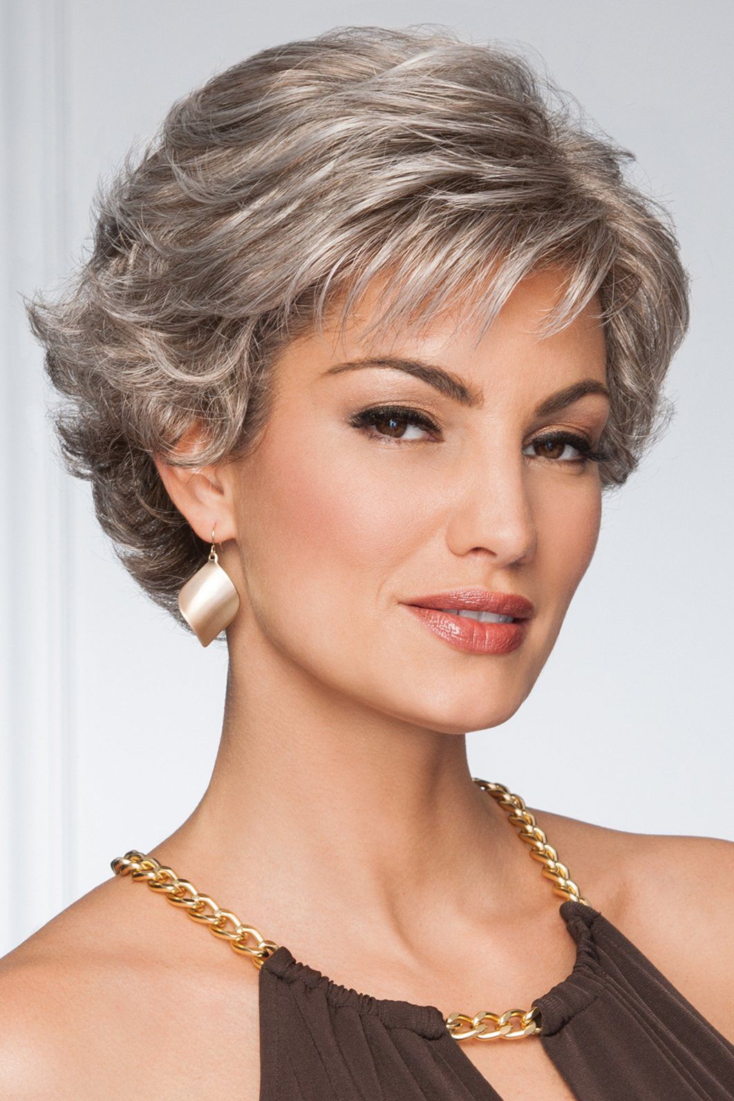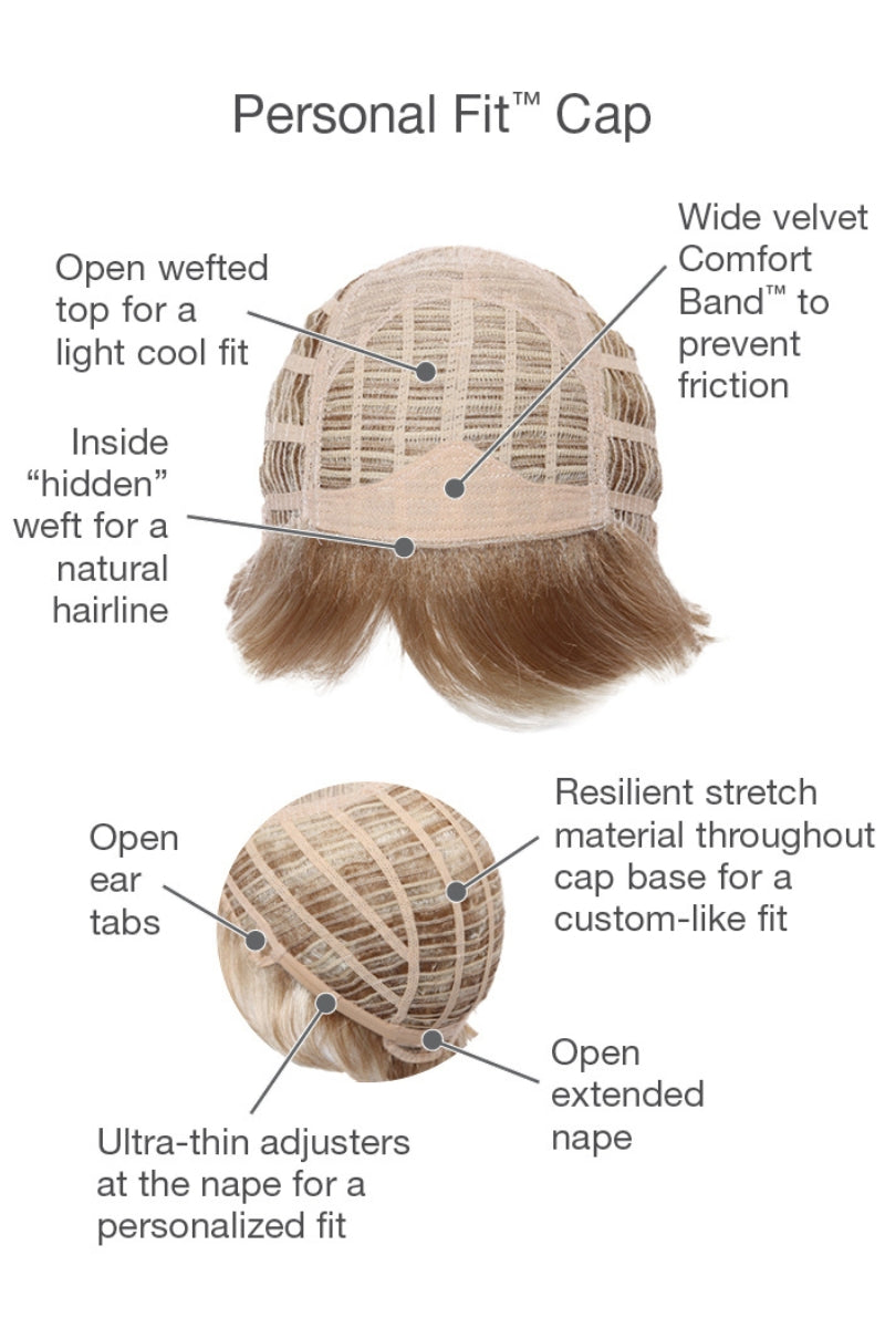 The timeless fluff style wig resurfaces with a contemporary touch. Soft layers in the front and side blend to an easy care brush-up back. Features include an inside "hidden" weft for a natural hairline, open ear tabs, and an open extended nape.