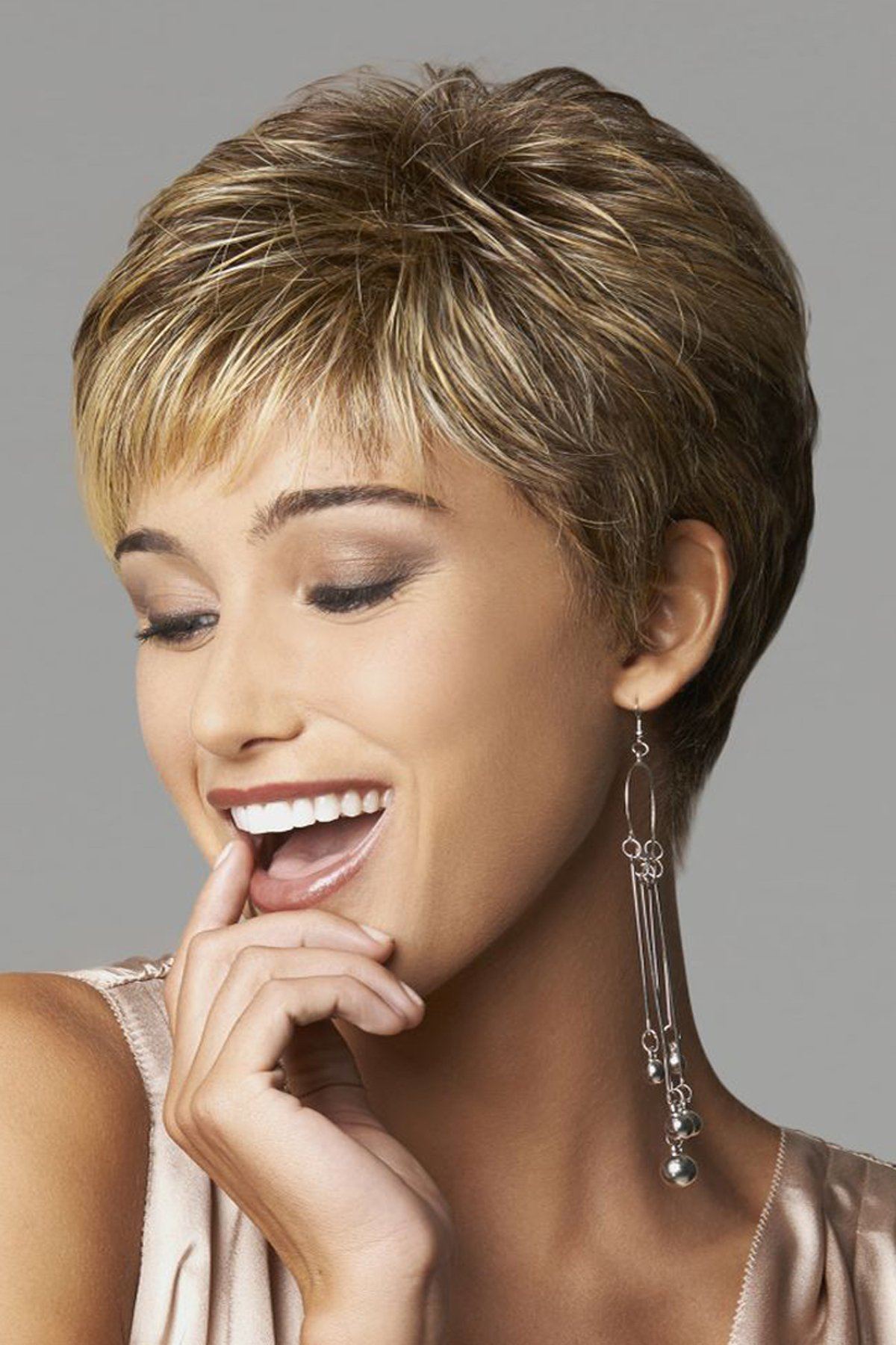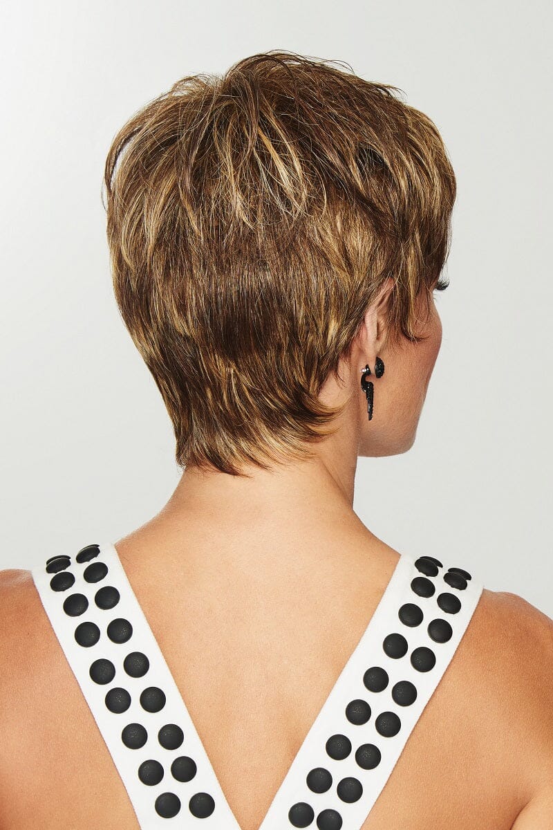Offering a light, cool fit with no-fuss styling, this short, slightly textured boy cut wig includes a barely curled top and crown, wispy, feathered bangs and expertly layered sides and back that blend into a neck hugging nape.