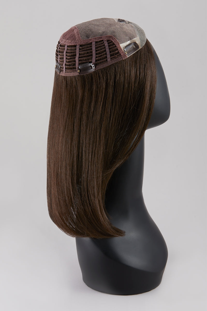 This hybridized SmartLace design pairs an invisible lace front with the lightweight comfort of a crown topper. Anchoring 12 inches of gorgeous hair, the clip in cap features three polyurethane pads to facilitate strategic adhesive use for added security.