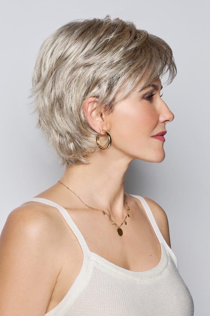 Introducing Raquel Welch Wigs Dress Code! Experience the upscale, sophisticated look with layered shag and razored texture for added volume. The short, soft hair with a tailored cut and elegant bounce will leave you feeling confident and stylish. Made with memory cap and Vibralite hair fibers for a comfortable and realistic wear.