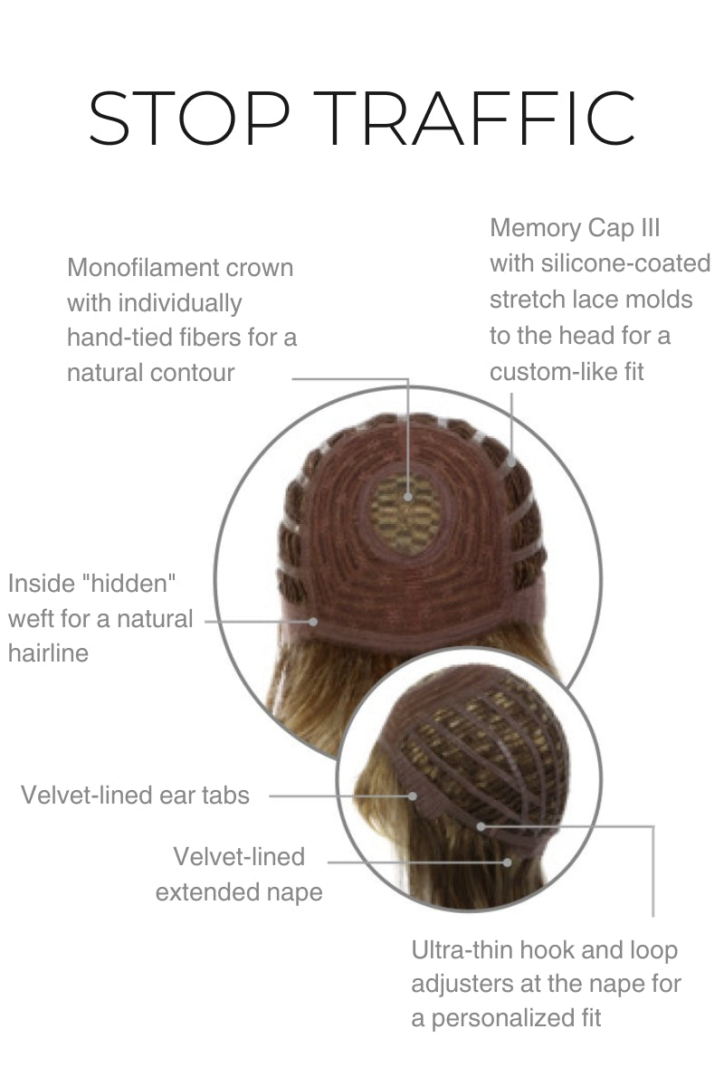 Memory Cap III: Wefted cap with silicone-coated stretch lace molds to the head for a custom-like fit.