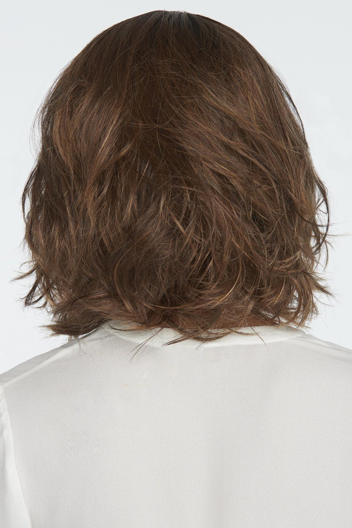 Texture and movement are the inspiration for this blunt, to-the-shoulder bob. A soft, cut fringe frames the eyes while tousled and loose curls are layered throughout for natural volume and an un-constructed look. The Sheer Indulgence monofilament crown provides a natural contour.