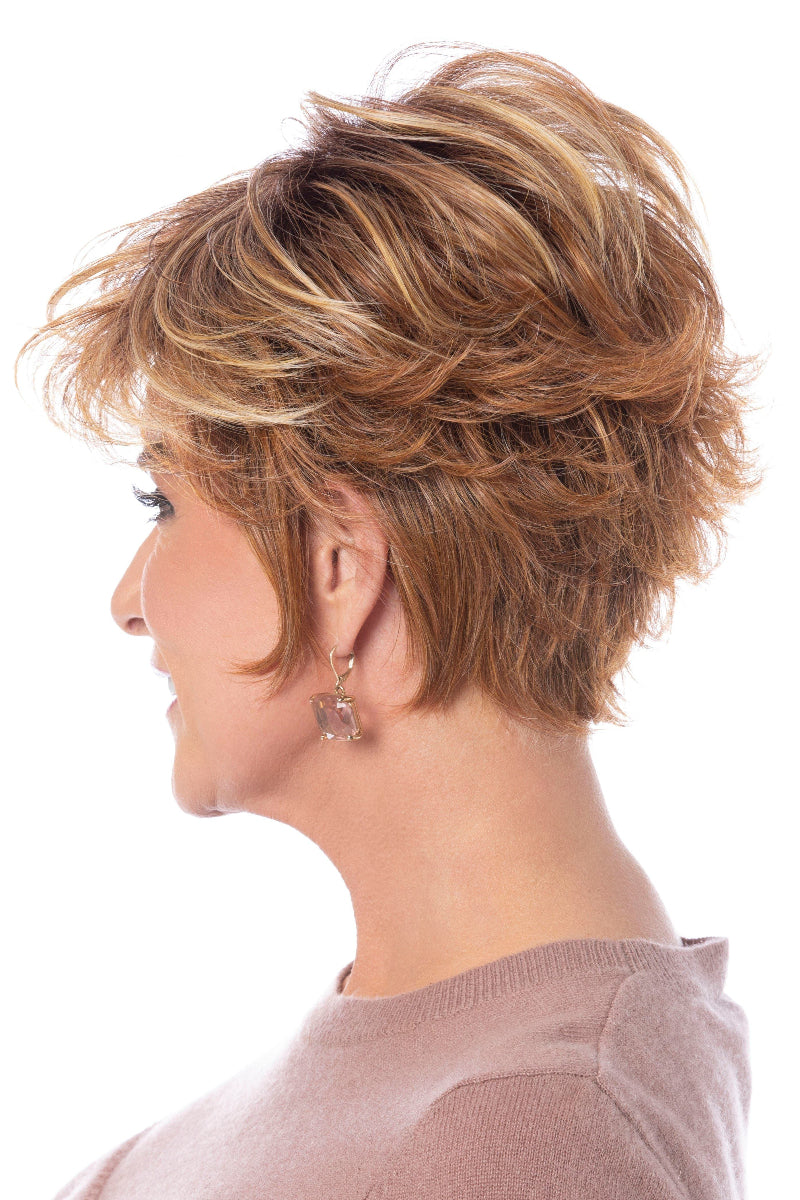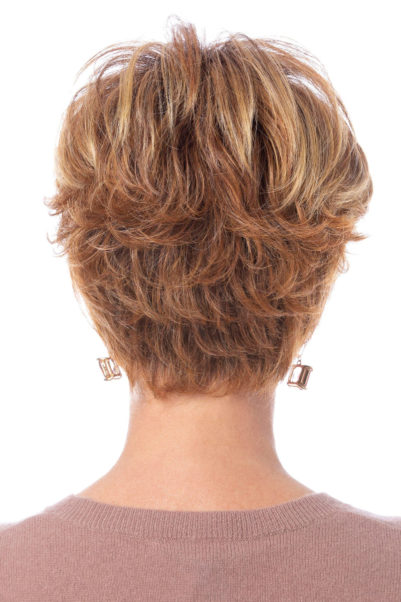 The Toni Brattin Vivacious Wig features a trendy combination of straight razor-cut front/sides and subtle swirl back for a fashion forward fresh and sophisticated look. Custom fit cap easily adjusts to most head sizes. With the look and feel of healthy, natural hair. Nylon wig cap and storage box included.