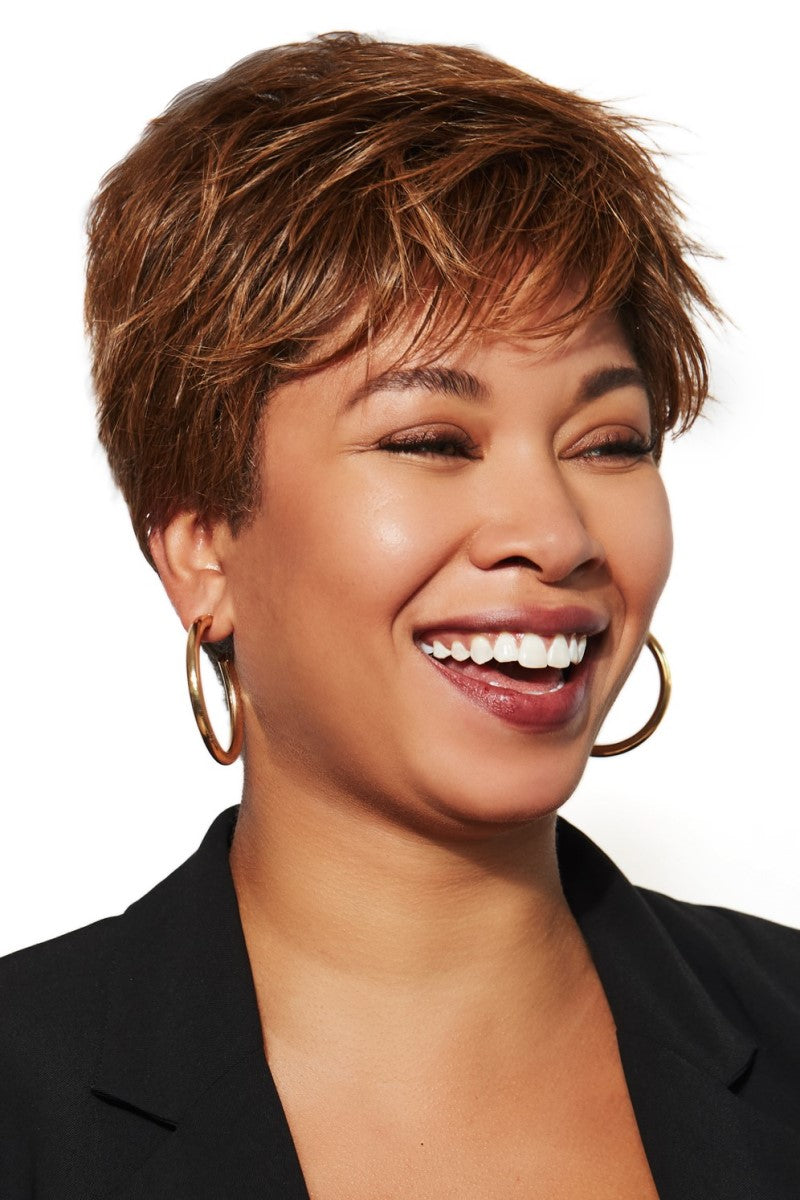 The Brushed Pixie Wig is a high energy cropped haircut with a smooth wave that frames the face with bangs of volume on top and our Cool Comfort™ cap for every day, all day comfort.