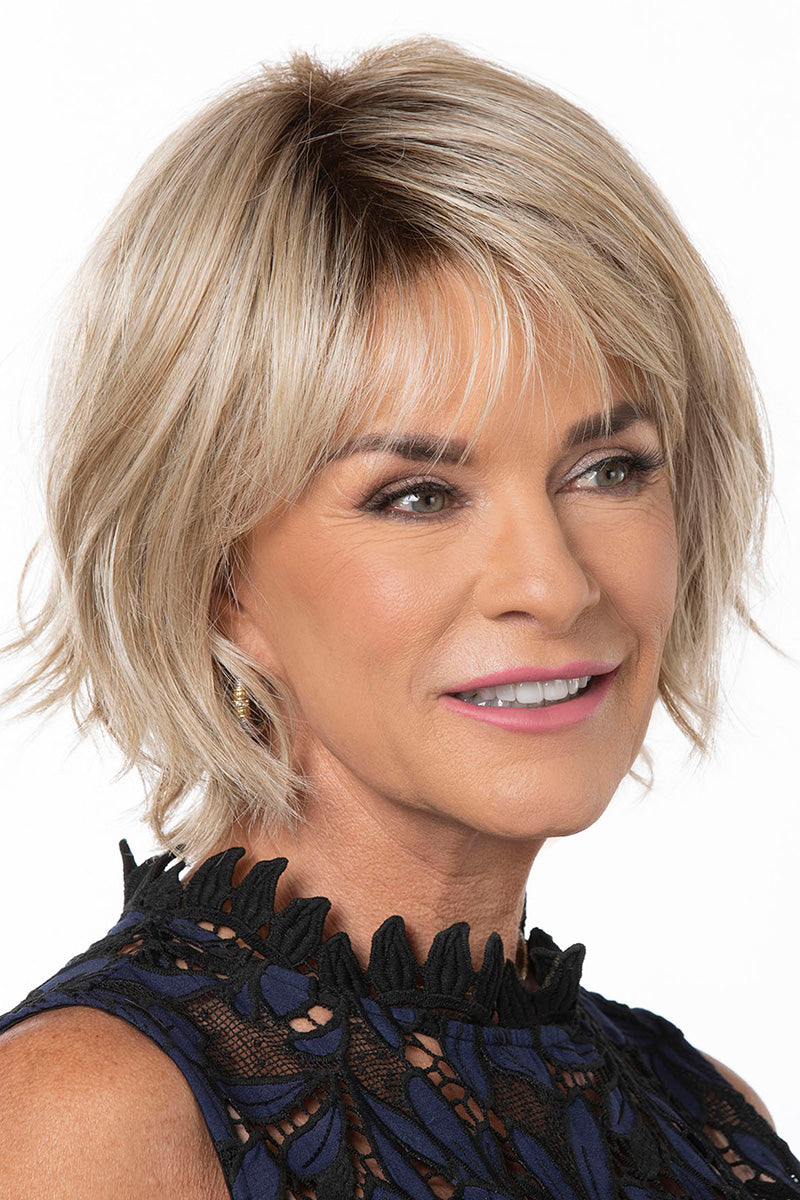 The Toni Brattin Trendy Plus textured wig features unstructured waves and soft razor-cut bangs that shape the face and highlight the eyes.  A specially designed wig cap can be easily adjusted for a custom fit. Additional comfort features include a wide velvet band at the front hairline, open wefting on top, and adjustable sizing tabs in the neckline for a comfortable and secure fit. All Toni Brattin wigs have the look and feel of natural hair.
